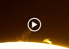 The resulting images were then arranged and combined into a mosaic using Photoshop CS6. From these full disk images I usually can determine what to image next, surface features or prominences(or both) Almost dead center is sunspot AR 1834, the bright yellow area. AR 1835 is slightly below. At the bottom edge of the disk is seen a large prominence, (animation at bottom of this post)